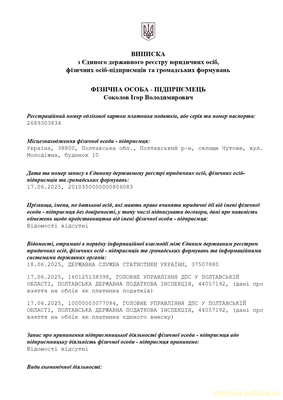 Виписка з Державного реєстру фізичних осіб-підприємців